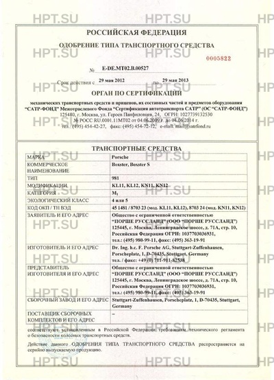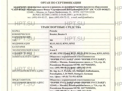 | Коммерческое наименование | Boxster, Boxstcr S. Тип ТС: 981 |