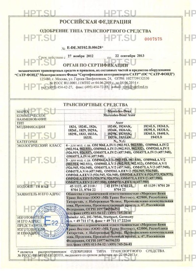 | Коммерческое наименование | Mercedes-Benz Axor. Тип ТС: Axor |