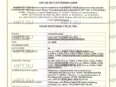 | Заявитель | Общество с ограниченной ответственностью "ФОЛЬКСВАГЕН Груп Рус" (ООО "ФОЛЬКСВАГЕН Груп Рус"), 248926, г. Калуга, ул. Автомобильная, д. 1, Российская Федерация, ОГРН: 1025005336564, тел.: (499) 957-00-00, факс: (499) 271-07-10 |