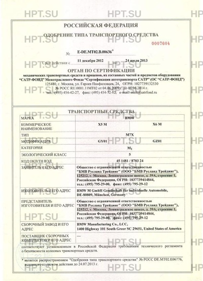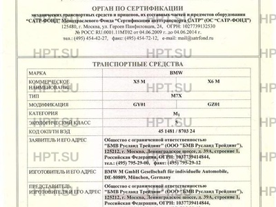 | Коммерческое наименование | X5 M , X6 M. Тип ТС: M7X |
