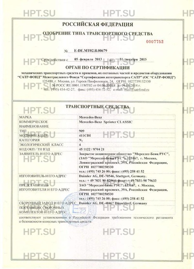 | Коммерческое наименование | Mercedes-Benz Sprinter СLASSIC |