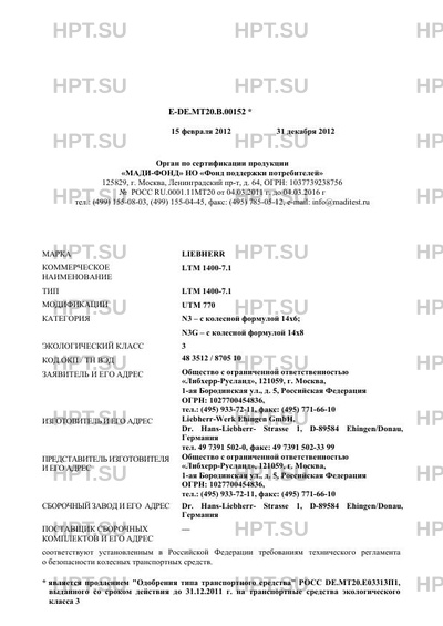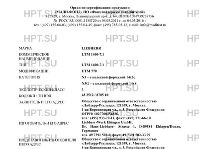 | Коммерческое наименование | LTM 1400-7.1. Тип ТС: LTM 1400-7.1 |
