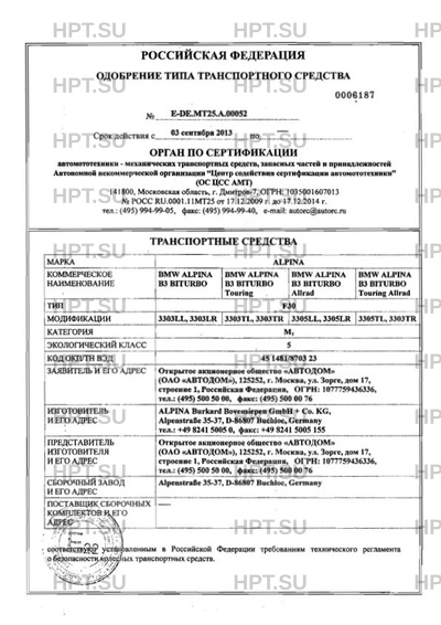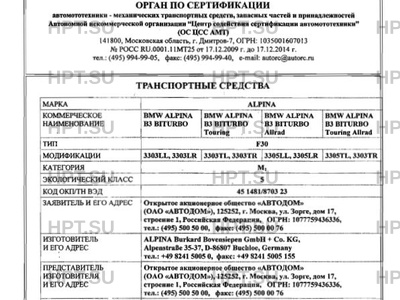 Коммерческое наименование BMW ALPINA B3 BITURBO; BMW ALPINA B3 BITURBO Touring; BMW ALPINA B3 BITURBO All…