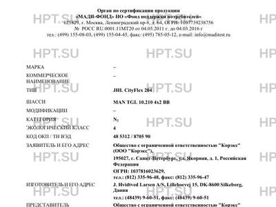 | Коммерческое наименование | . Тип ТС: JHL CityFlex 204 |