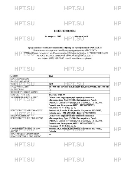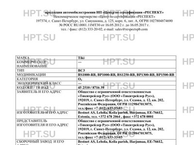 | Марка ТС | Tiki |