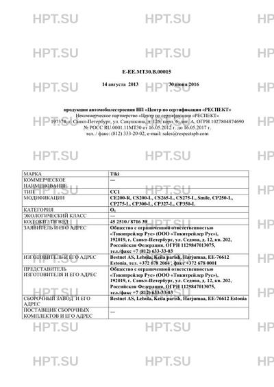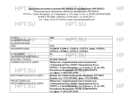 | Представитель изготовителя | Общество с ограниченной ответственностью "Тикитрейлер Рус" (ООО "Тикитрейлер Рус"), 192019, г. Санкт-Петербург, ул. Седова, д. 12, кв. 202, Российская Федерация, ОГРН 1129847013075, тел./факс +7 (812) 633-33-03 |
