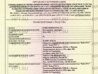 | Марка ТС | COBO HERMANOS, S.L. |