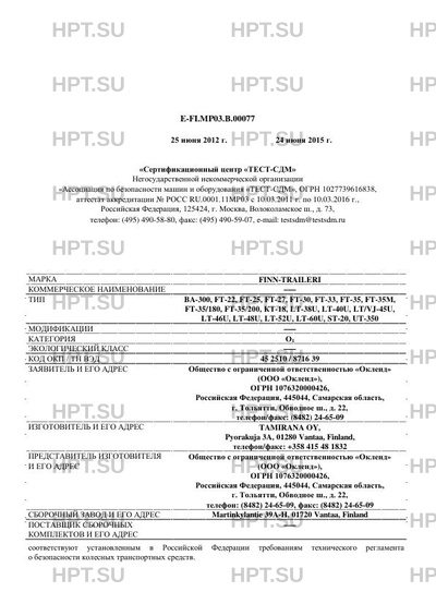 | Исполнение загрузочного пространства | бортовая платформа с откидными бортами (для FT-22, FT-25, FT-27, FT-30, FT-33, FT-35, FT-35М, FT-35/180, FT-35/200, ST- 20); специальная платформа с откидными бортами (для КТ-18, BA-300); оцинкованная рама, с килевыми валиками или без них, с полозьями боковой поддержки и ручной лебедкой (для LT-38U, LT-40U, LT/VJ-45U, LT-46U, LT-48U, LT-52U, LT-60U); фургон (для UT-350) для ТС FINN-TRAILERI FT-22, FT-25, FT-27, FT-30, FT-33, FT-35, FT-35М, FT-35/180, FT-35/200, ST-20, КТ-18, BA-300 LT-38U, LT-40U, LT-46U, LT-48U, LT-52U, LT-60U LT/VJ-45U UT-350 |