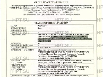 | Заявитель | Общество с ограниченной ответственностью 1 «ПЕЖО СИТРОЕН РУС» (ООО «ПЕЖО СИТРОЕН РУС»), ; 101000, (. Москва, Чистопрудный бульвар, д. 17, стр. 1, 1 Российская Федерация, ОГРН: 1047796295744, тел,: (495) 981 14 10, факс: (495) 981 14 11 |