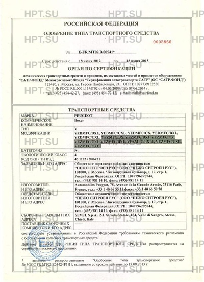 | Коммерческое наименование | Boxer. Тип ТС: Y |