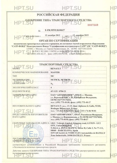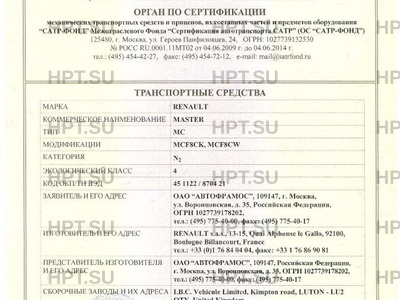 | Коммерческое наименование | MASTER. Тип ТС: МC |