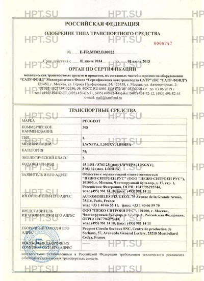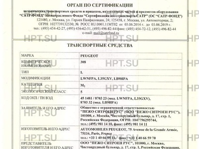| Представитель изготовителя | ООО «ПЕЖО СИТРОЕН РУС», 101000, г. Москва |