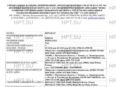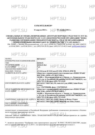 | Предприятие-изготовитель | RENAULT TRUCKS, 99, route de Lyon, 69802, Saint-Priest, France, тел. +33472968486, факс +33472969143 |