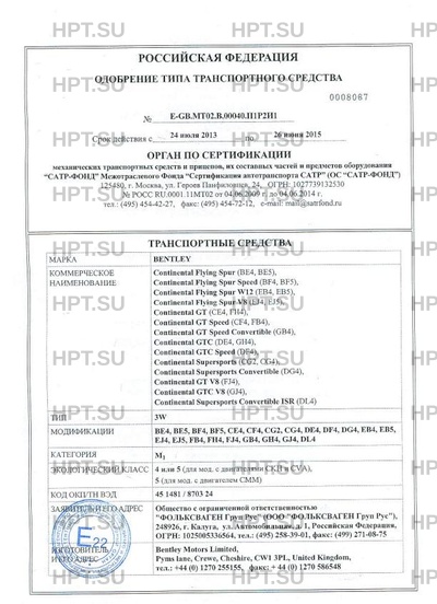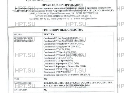 | Тип ТС | Continental Flying Spur (BE4, BE5),,Continental Flying Spur Speed (BF4, BF5),,Continental Flying Spur W12 (EB4, EB5),,Continental Flying Spur V8 (EJ4, EJ5),,Continental GT (CE4, FH4),,Continental GT Speed (CF4, FB4),,Continental GT Speed Convertible (GB4),,Continental GTC (DE4, GH4),,Continental GTC Speed (DF4),,Continental Supersports (CG2, CG4), Continental Supersports Convertible (DG4),,Continental GT V8 (FJ4),,Continental GTC V8 (GJ4),,Continental Supersports Convertible ISR (DL4) |
