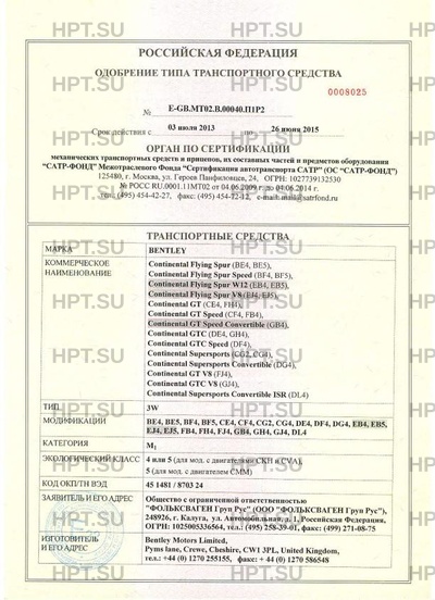 | Тип ТС | Continental Flying Spur (BE4, BE5),,Continental Flying Spur Speed (BF4, BF5),,Continental Flying Spur W12 (EB4, EB5),,Continental Flying Spur V8 (EJ4, EJ5),,Continental GT (CE4, FH4),,Continental GT Speed (CF4, FB4),,Continental GT Speed Convertible (GB4),,Continental GTC (DE4, GH4),,Continental GTC Speed (DF4),,Continental Supersports (CG2, CG4), Continental Supersports Convertible (DG4),,Continental GT V8 (FJ4),,Continental GTC V8 (GJ4),,Continental Supersports Convertible ISR (DL4) |