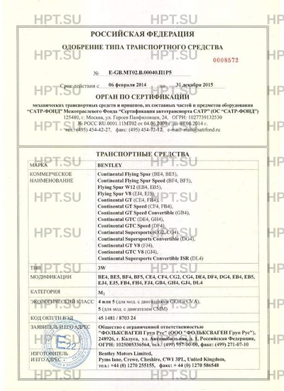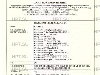 | Тип ТС | Continental Flying Spur (BE4, BE5),,Continental Flying Spur Speed (BF4, BF5),,Flying Spur W12 (EB4, EB5),,Flying Spur V8 (EJ4, EJ5),,Continental GT (CE4, FH4),,Continental GT Speed (CF4, FB4),,Continental GT Speed Convertible (GB4),,Continental GTC (DE4, GH4),,Continental GTC Speed (DF4),,Continental Supersports (CG2, CG4), Continental Supersports Convertible (DG4),,Continental GT V8 (FJ4),,Continental GTC V8 (GJ4),,Continental Supersports Convertible ISR (DL4) |