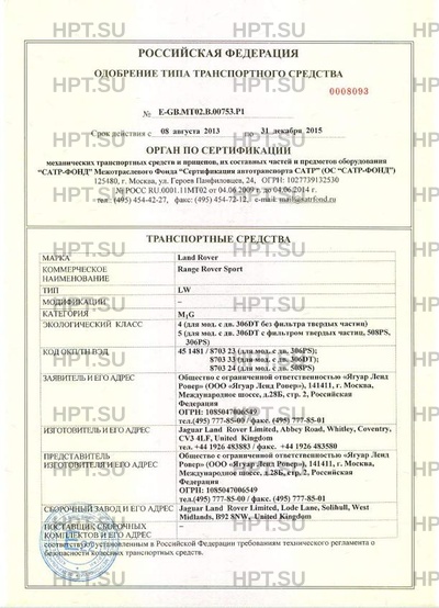 | Тип ТС | Range Rover Sport |