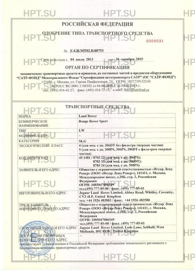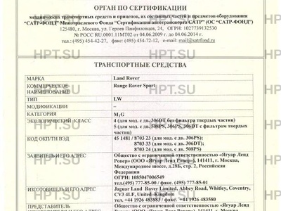 | Тип ТС | Range Rover Sport |
