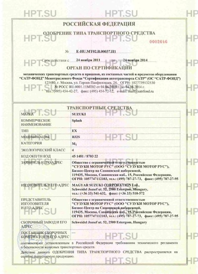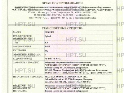 | Коммерческое наименование | Splash. Тип ТС: EX |