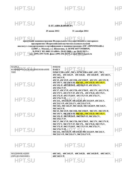 Заявитель Общество с ограниченной ответственностью "Ивеко Руссия" (ООО "Ивеко Руссия") 141400, Московская обл., г. Химки, ул. Ленинградская, владение 39, стр.6 ОГРН 1067746751918 тел. (495) 504-04-42, факс (495) 504-04-43 Е-IT.АЯ04.В.00185.Р1 3
