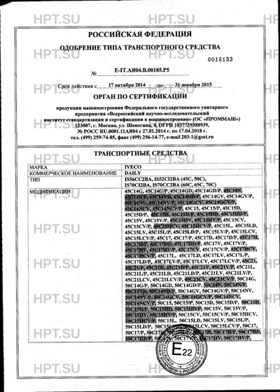 Предприятие-изготовитель IVECO S.p.A., 10156, Torino, Via Puglia, 35, Italy тел. : +39 011 007 21 11, факс : +39 011 007 49 58