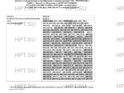 | Заявитель | Общество с ограниченной ответственностью "Ивеко Руссия" (ООО "Ивеко Руссия") 141400, Московская обл., г. Химки, ул. Ленинградская, владение 39, стр.6 ОГРН 1067746751918 тел. (495) 504-04-42, факс (495) 504-04-43 |