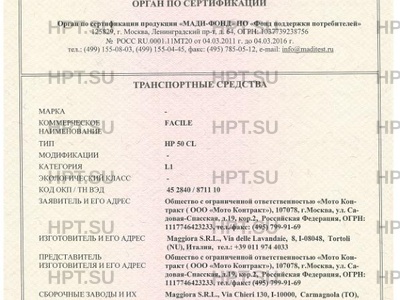 Коммерческое наименование FACILE; НР 50 CL