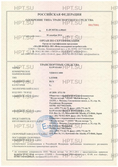 | Коммерческое наименование | VERSYS 1000; LZT00B |