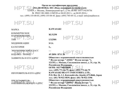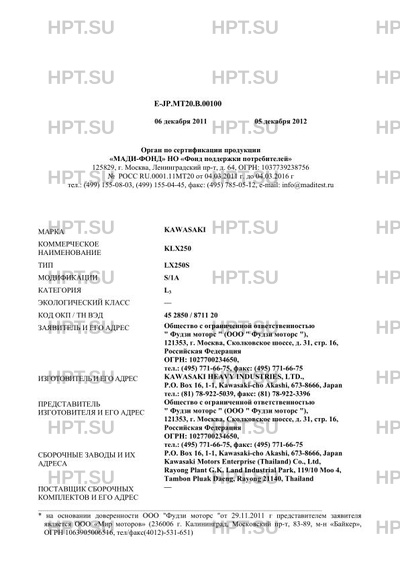 | Коммерческое наименование | KLX250. Тип ТС: LX250S |