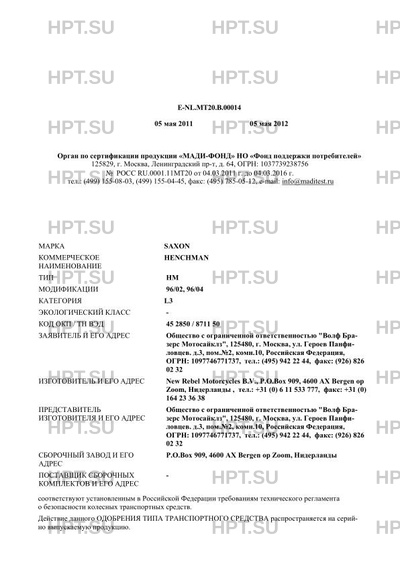 | Коммерческое наименование | HENCHMAN. Тип ТС: HM |