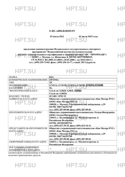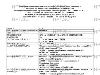 | Представитель изготовителя | Общество с ограниченной ответственностью "Киа Моторс РУС" (ООО "Киа Моторс РУС"), 109028, г. Москва, Серебряническая набережная, д.29 ОГРН: 5087746291760 тел. (495) 287-09-00, факс (495) 287-09-01 |