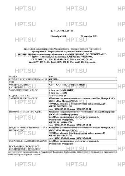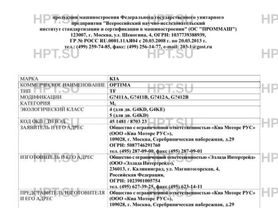 | Представитель изготовителя | Общество с ограниченной ответственностью "Киа Моторс РУС" (ООО "Киа Моторс РУС"), 109028, г. Москва, Серебряническая набережная, д.29 ОГРН: 5087746291760 тел. (495) 287-09-00, факс (495) 287-09-01 |
