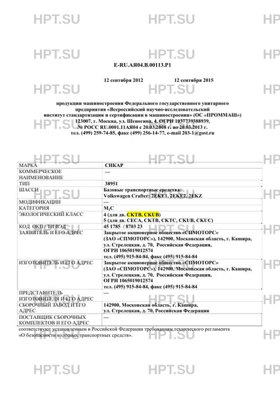 | Базовое ТС / Шасси | Базовые транспортные средства: Volkswagen Crafter: 2EKE1, 2EKE2, 2EKZ |