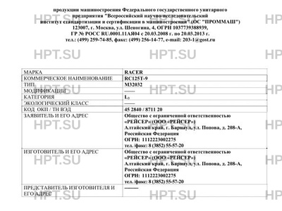 | Заявитель | Общество с ограниченной ответственностью "РЕЙСЕР" (ООО "РЕЙСЕР") Алтайский край, г. Барнаул, ул. Попова, д. 208-А, Российская Федерация ОГРН: 1112223002275 тел. /факс: 8 (3852) 55-57-20 |