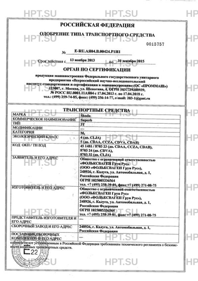 | Заявитель | Общество с ограниченной ответственностью "ФОЛЬКСВАГЕН Груп Рус" (ООО "ФОЛЬКСВАГЕН Груп Рус"), 248926, г. Калуга, ул. Автомобильная, д. 1, Российская Федерация ОГРН 1025005336564 тел. +7 (495) 258-39-01, факс +7 (499) 271-08-75 |