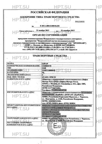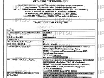 | Представитель изготовителя | Общество с ограниченной ответственностью «Лифан Моторс Рус» (ООО «Лифан Моторс Рус») |