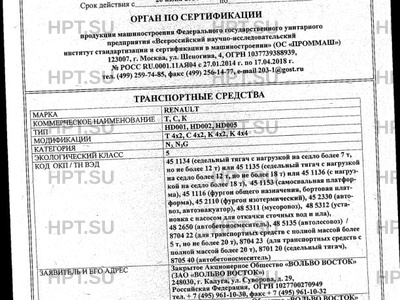 | Марка ТС | RENAULT |