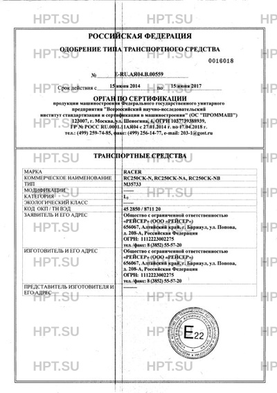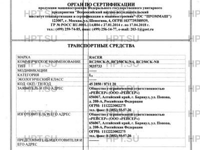 | Марка ТС | RACER |
