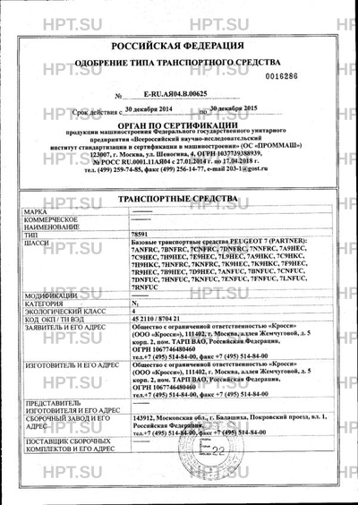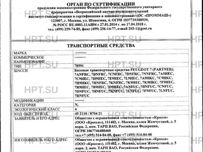 | Базовое ТС / Шасси | Базовые транспортные средства PEUGEOT 7 (PARTNER): 7ANFRC, 7BNFRC, 7CNFRC, 7D… |