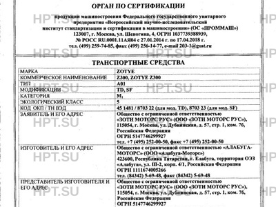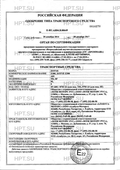 | Коммерческое наименование | Z300, ZOTYE Z300; A01 |