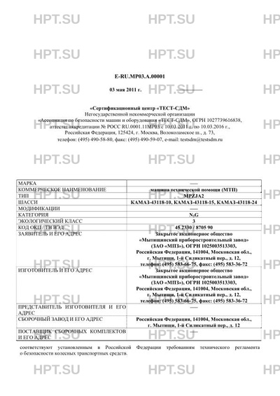 Коммерческое наименование машина технической помощи (МТП). Тип ТС: MPZJA2