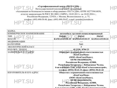 Коммерческое наименование автомобиль грузовой специализированный