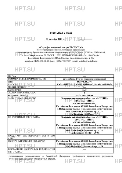 | Базовое ТС / Шасси | КАМАЗ-53228-15, КАМАЗ-65111-62, КАМАЗ-65111-24 |