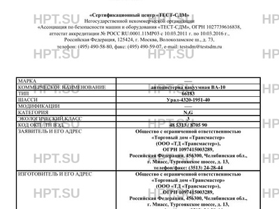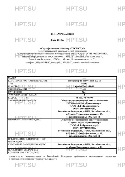 | Предприятие-изготовитель | Общество с ограниченной ответственностью "Торговый дом "Трансмастер" (ООО "ТД "Трансмастер"), ОГРН 1097415003289, Российская Федерация, 456300, Челябинская обл., г. Миасс, Тургоякское шоссе, д. 13, телефон/факс: (3513) 24-28-44 |