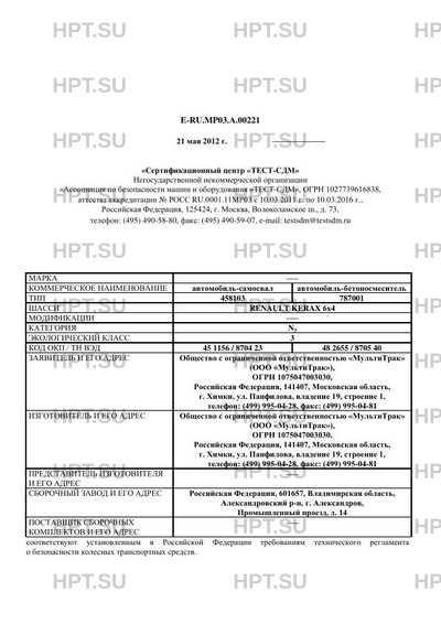 Предприятие-изготовитель Общество с ограниченной ответственностью «МультиТрак» (ООО «МультиТрак»), ОГРН 1075047003030, Российская Федерация, 141407, Московская область, г. Химки, ул. Панфилова, владение 19, строение 1, телефон: (499) 995-04-28, факс: (499) 995-04-81