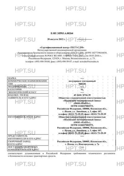 | Заявитель | Общество с ограниченной ответственностью «Псковский Автоприцепный Завод» (ООО «ПАПЗ»), ОГРН 1126027002573; Российская Федерация, 180006, Псковская обл., г. Псков, ул. Линейная, д. 3, офис 107 |