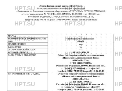 | Дополнительная информация | Транспортные средства 940320 предназначены для перевозки различных грузов. Транспортные средства не предназначены для перевозки пищевых продуктов и опасных грузов. В случае превышения параметров, указанных в пунктах 1.1, 3.1, 3.2 Приложения № 4 к техническому регламенту о безопасности колесных транспортных средств, для передвижения транспортных средств по территории Российской Федерации необходимо оформление специального разрешения. |