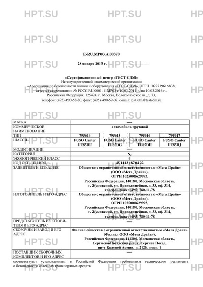 | Базовое ТС / Шасси | FUSO Canter FE85DE FUSO Canter FE85DG FUSO Canter FE85DH FUSO Canter FE85DJ |