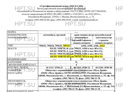 | Базовое ТС / Шасси | ISUZU NPR75L-K (для 795633, А104 в мод. 00 и 11), ISUZU NPR75L-L (для 795634, А… |