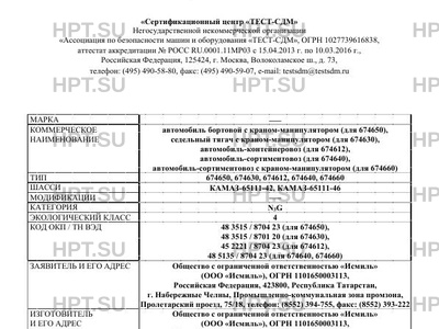| Коммерческое наименование | автомобиль бортовой с краном-манипулятором (для 674650), седельный тягач с кран… |